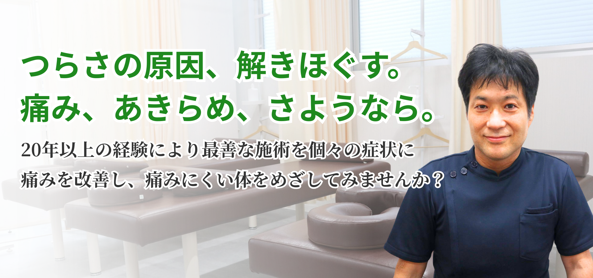これまで数多くの患者様の痛みと向き合い、改善へと導いてきた豊富な経験があるからこそ、あなたの症状にも自信を持って対応いたします。